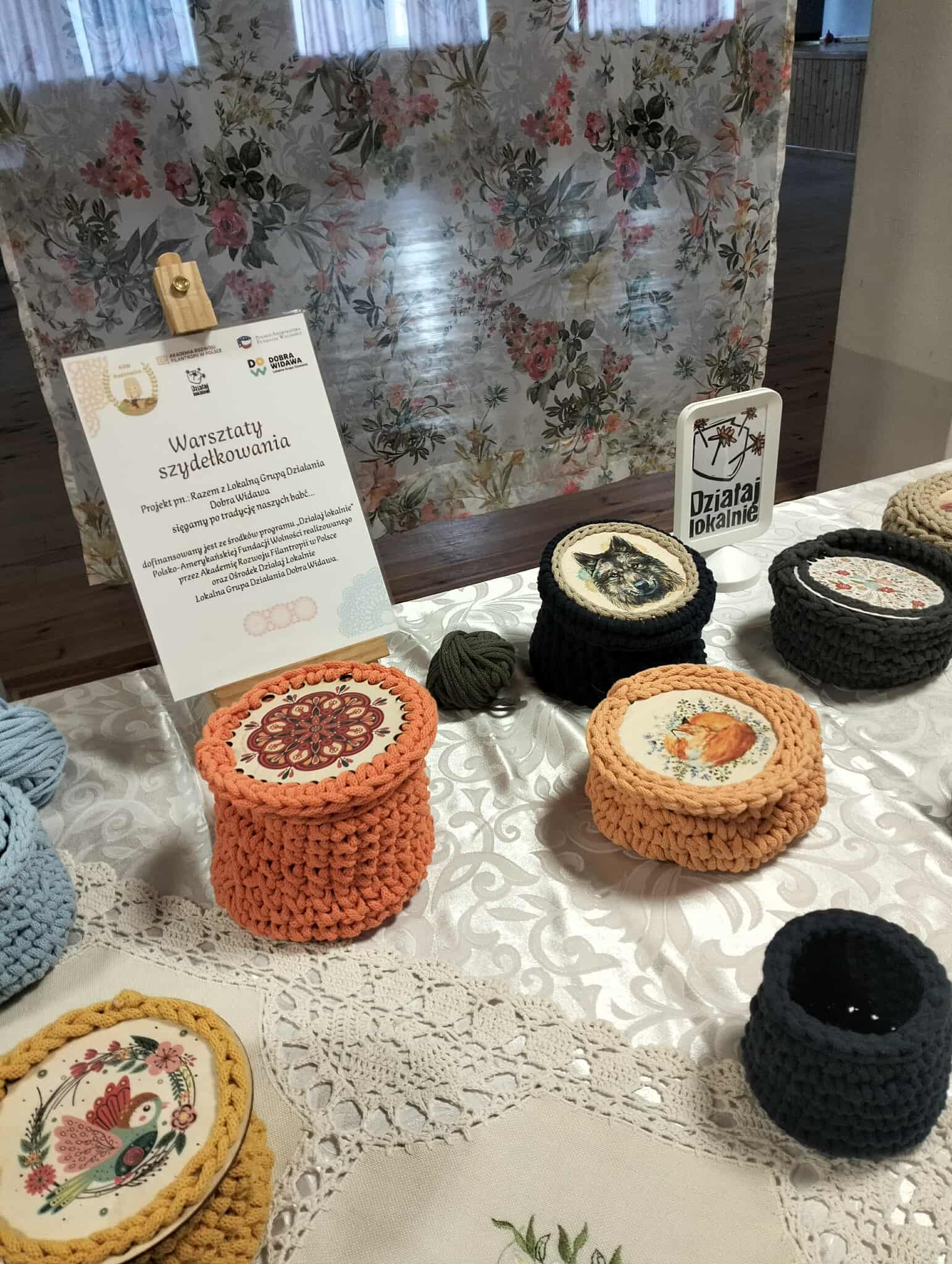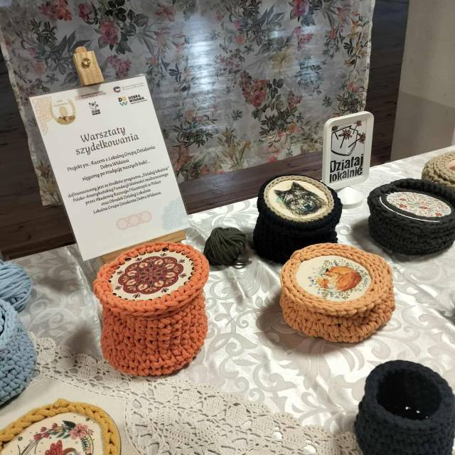 Działania: W ramach projektu zorganizowano dwa spotkania warsztatowe poświęcone tradycyjnemu rękodziełu. Podczas pierwszych warsztatów uczestnicy wykonywali szydełkowe koszyczki ze sznurka bawełnianego, a podczas kolejnych poznawali techniki haftu klasycznego i krzyżykowego. W działania aktywnie włączyły się osoby starsze, które pomagały uczestnikom i dzieliły się swoim doświadczeniem, dzięki czemu warsztaty stały się przestrzenią spotkania i współpracy różnych pokoleń. Zwieńczeniem projektu była wystawa wykonanych prac połączona ze spotkaniem mieszkańców i występem Zespołu Ludowego Radzowiczanie. Projekt przyczynił się do integracji społeczności oraz zachęcił mieszkańców do kontynuowania wspólnych warsztatów rękodzielniczych.