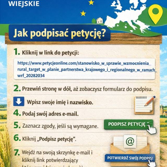 Dlatego też Zarząd Polskiej Sieci LGD rozpoczął zbiórkę podpisów pod petycją, która ma ogromne znaczenie dla naszej przyszłości. Petycja wzywa Ministerstwa do utrzymania wysokiego poziomu finansowania Rural Target i wyraźnego wsparcia dla działań LEADER/RLKS– tak, aby każda grupa mogła realnie odpowiadać na lokalne wyzwania. To nasz wspólny głos, który może zmienić decyzje decydentów!