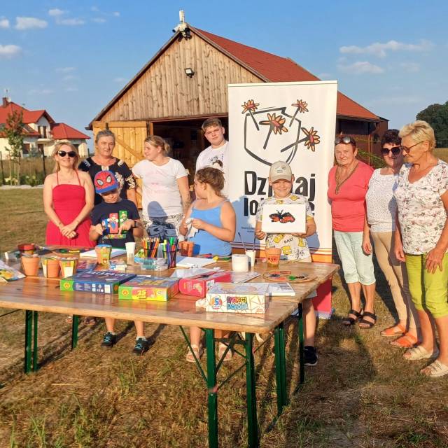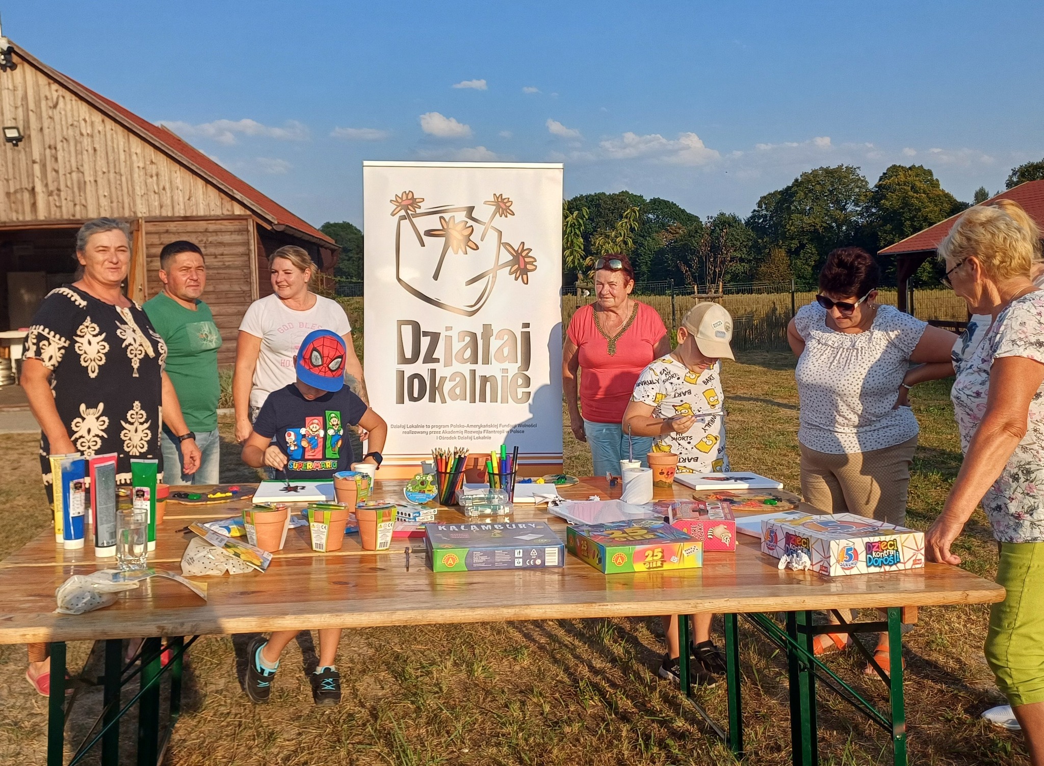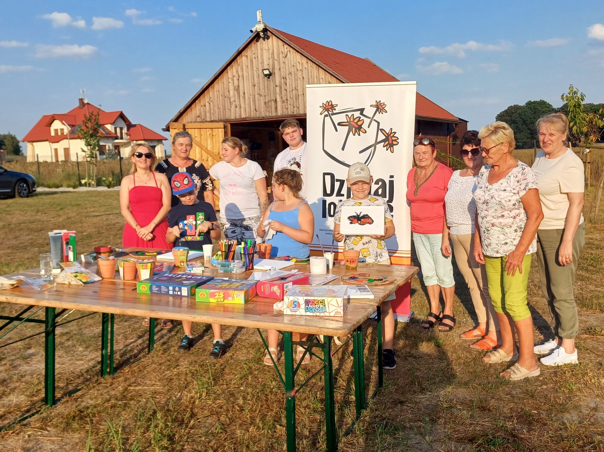 Działania: W ramach projektu zorganizowane zostały letnie eventy plenerowe, których motywem przewodnim był - relaks oraz integracja lokalnej społeczności na świeżym powietrzu, połączony z doświadczeniami kulturowymi. Jednym z takich eventów była strefa kibica, na którą zakupione zostało 16 leżaków z logotypem ,,Działaj Lokalnie". Projekt zakładał również organizację kina dla najmłodszych oraz warsztatu tematycznego - ,,motyl fioletek", który odbył się przed seansem. Dzieci różnymi metodami ozdabiały wcześniej przygotowane szablony motyli. Końcowym etapem projektu był wieczór zabaw plenerowych na którym uczestnicy tworzyli ścieżkę sensoryczną, a całość zakończyła się wspólnym pieczeniem kiełbasek przy ognisku.