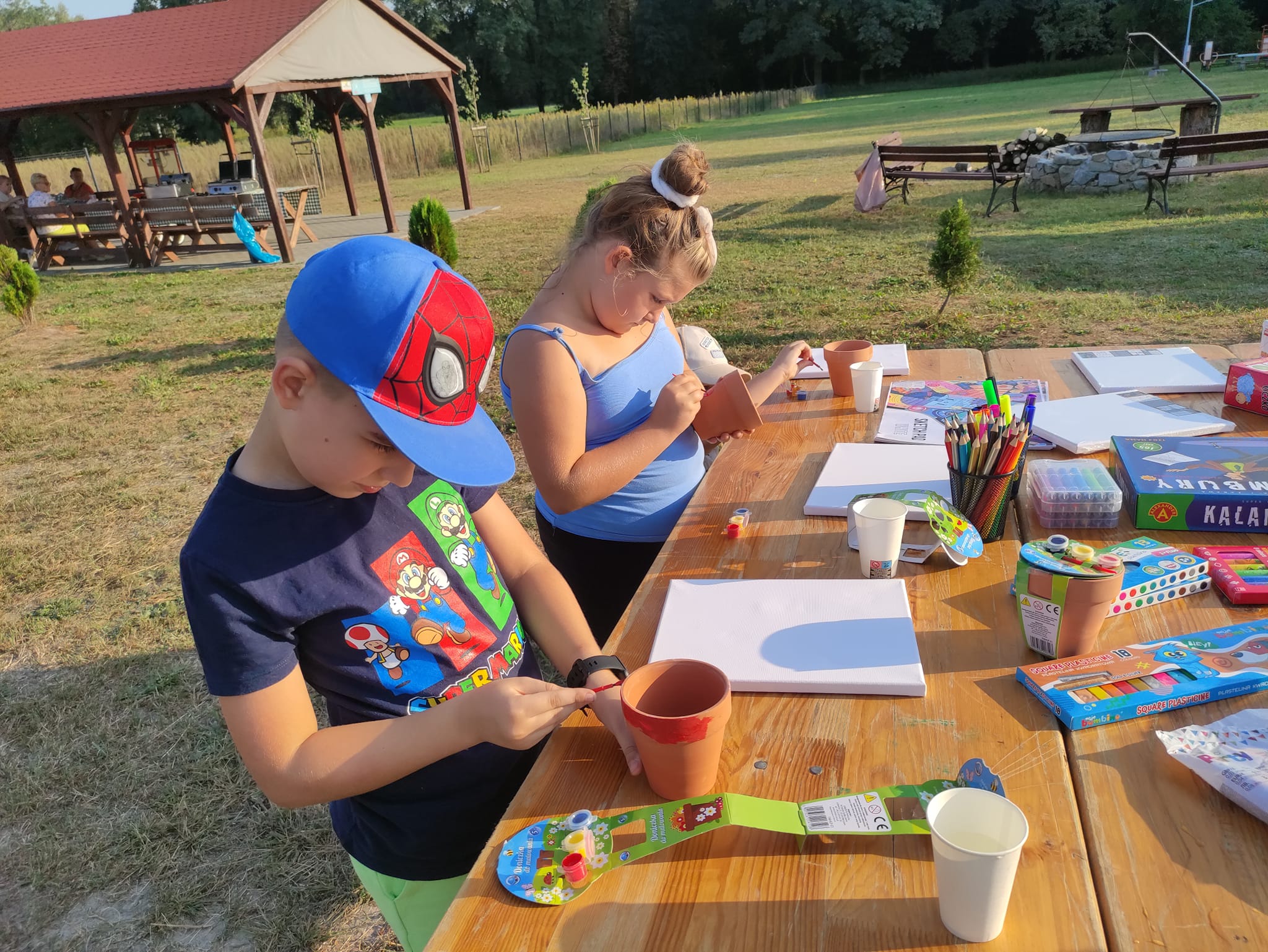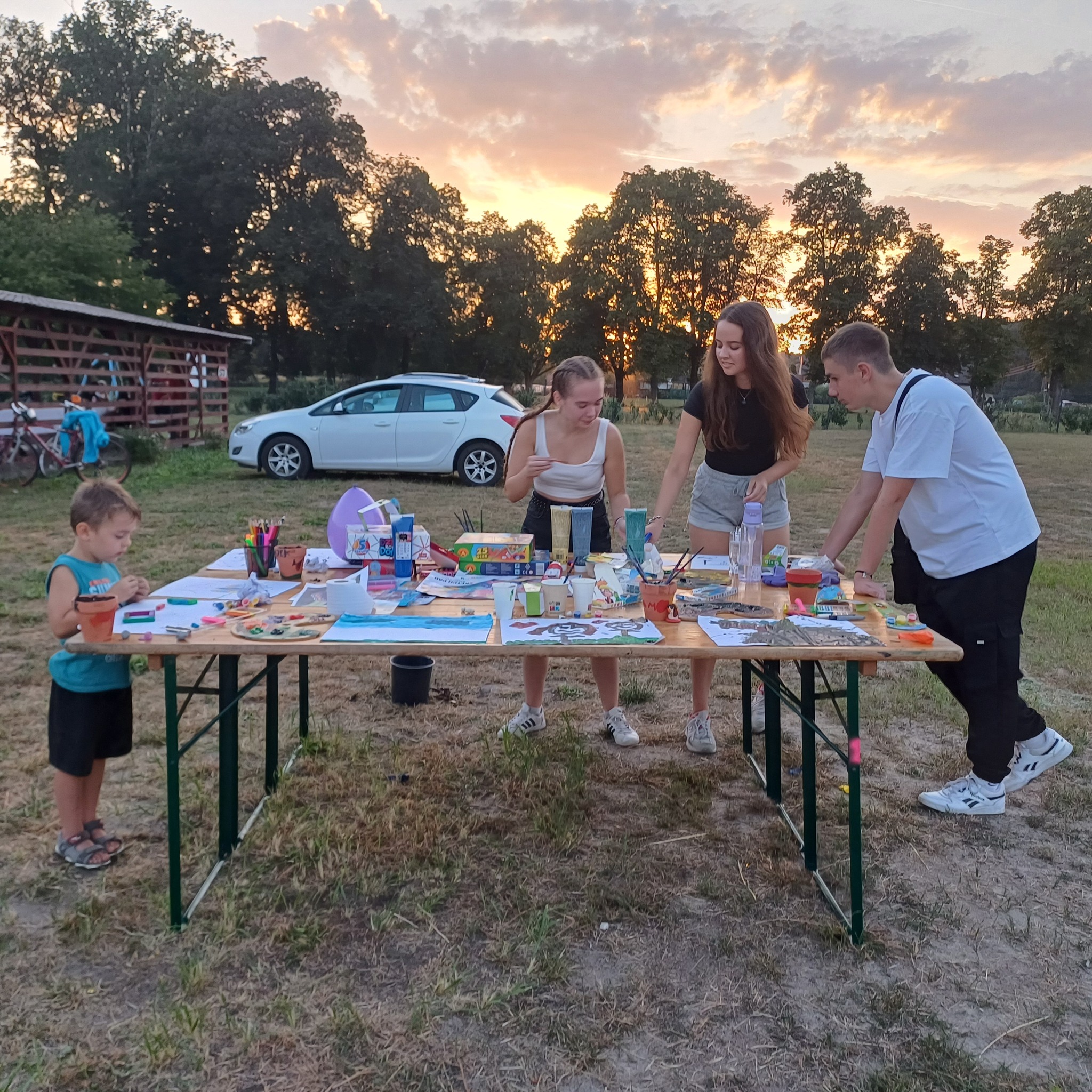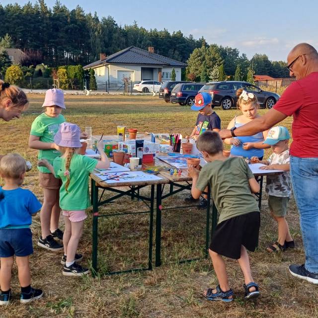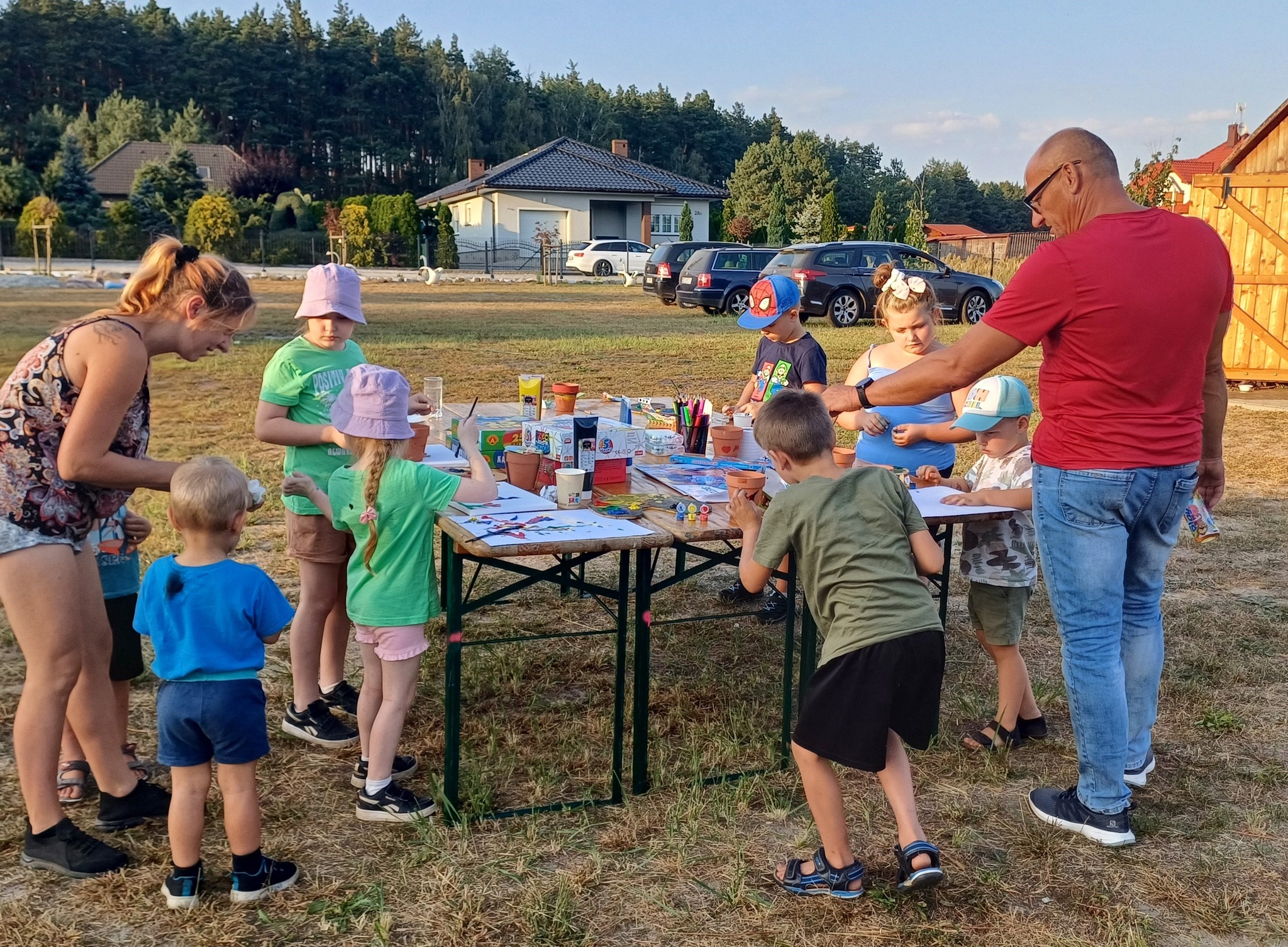 Działania: W ramach projektu zorganizowane zostały letnie eventy plenerowe, których motywem przewodnim był - relaks oraz integracja lokalnej społeczności na świeżym powietrzu, połączony z doświadczeniami kulturowymi. Jednym z takich eventów była strefa kibica, na którą zakupione zostało 16 leżaków z logotypem ,,Działaj Lokalnie". Projekt zakładał również organizację kina dla najmłodszych oraz warsztatu tematycznego - ,,motyl fioletek", który odbył się przed seansem. Dzieci różnymi metodami ozdabiały wcześniej przygotowane szablony motyli. Końcowym etapem projektu był wieczór zabaw plenerowych na którym uczestnicy tworzyli ścieżkę sensoryczną, a całość zakończyła się wspólnym pieczeniem kiełbasek przy ognisku.